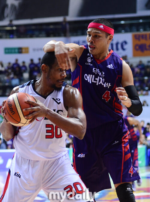 [마이데일리 = 고양 곽경훈 기자] 고양 오리온스 문태종이 12일 오후 경기도 고양시 고양실내체육관에서 진행된 '2015-2016 KCC 프로농구' 플레이오프 3차전 고양 오리온스-울산 모비스의 경기에서 모비스 클라크를 수비하고 있다.