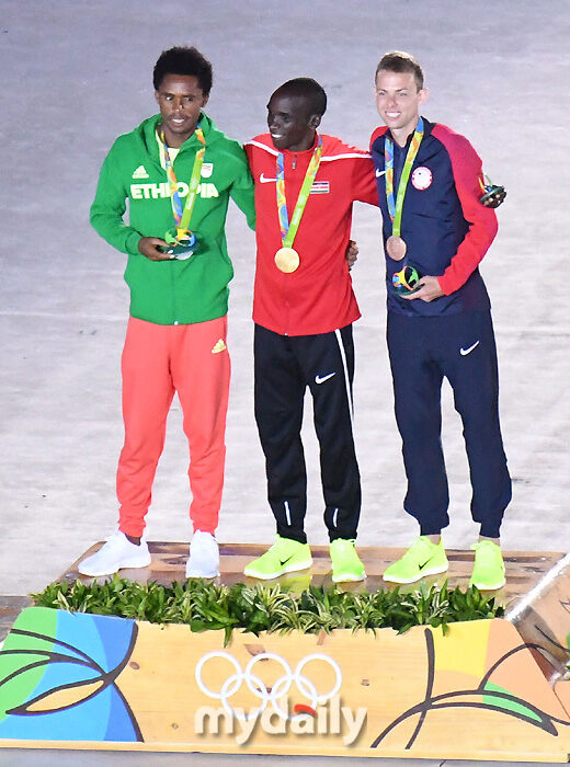 [마이데일리 = 리우데자네이루 (브라질) 곽경훈 기자] 22일 오전 (한국시간) 브라질 리우데자네이루의 마라카낭 경기장에서 진행된 '2016 리우올림픽' 폐막식에서 남자 마라톤 시상식이 거행됐다.