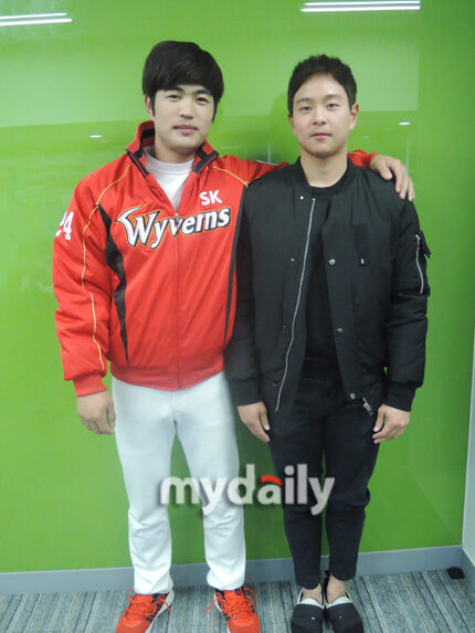 [SK 김민식(왼쪽)과 최정민. 사진=고동현 기자 kodori@mydaily.co.kr]
