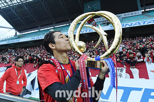 [마이데일리 = 전주(전라북도) 곽경훈 기자] FC서울 박주영이 6일 오후 전라북도 전주월드컵경기장에서 진행된 K리그 클래식 38라운드 전북 현대-FC서울의 경기에서 우승을 차지한뒤 트로피에 키스를 하고 있다.