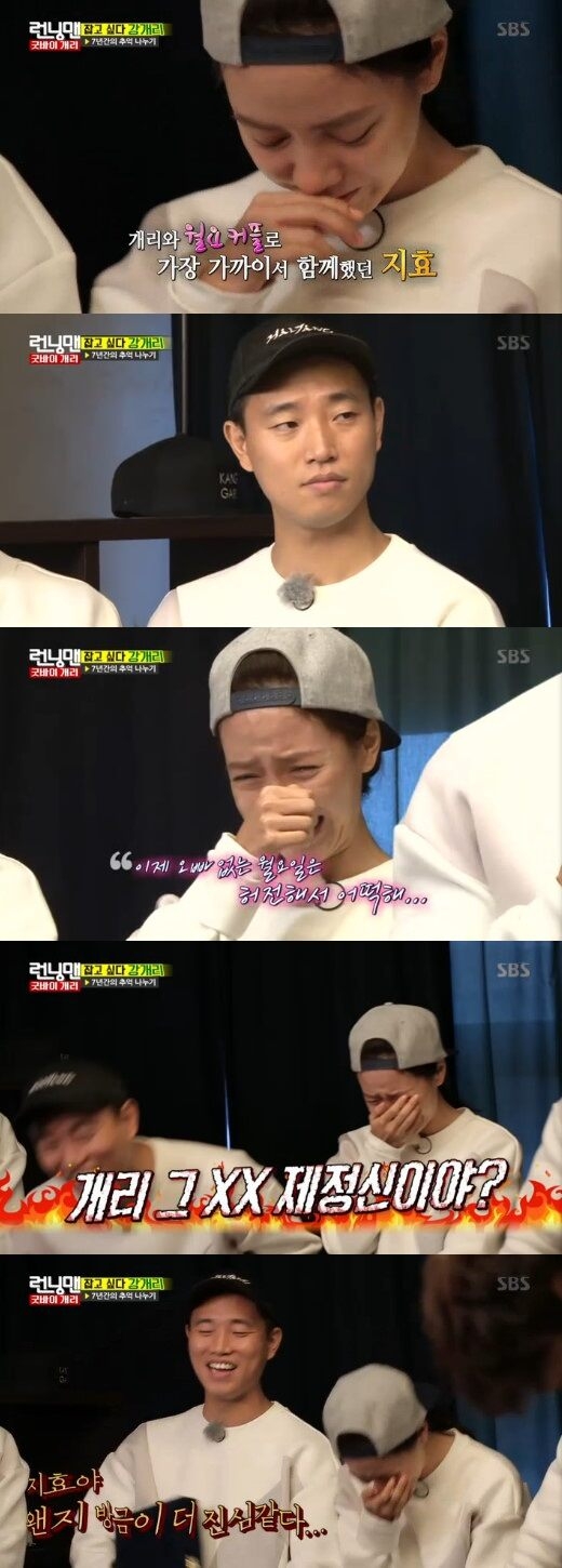 마지막으로 개리 하차에 대한 인사를 했다. 월요커플로 함께 했던 송지효는 "따로 이야기를 많이 나눴다"면서도 "좀 아쉽기도 한데 응원할게요. 잘 사세요"라며 결국 눈물을 흘렸다. 이에 김종국은 "송지효가 '개리 오빠 없어서 어떡해 했다'라고 전했다"고 했다. 유재석은 "내가 들은 것과 다르다"며 "'그 오빠 제정신이야?' 했다"라고 덧붙였다.