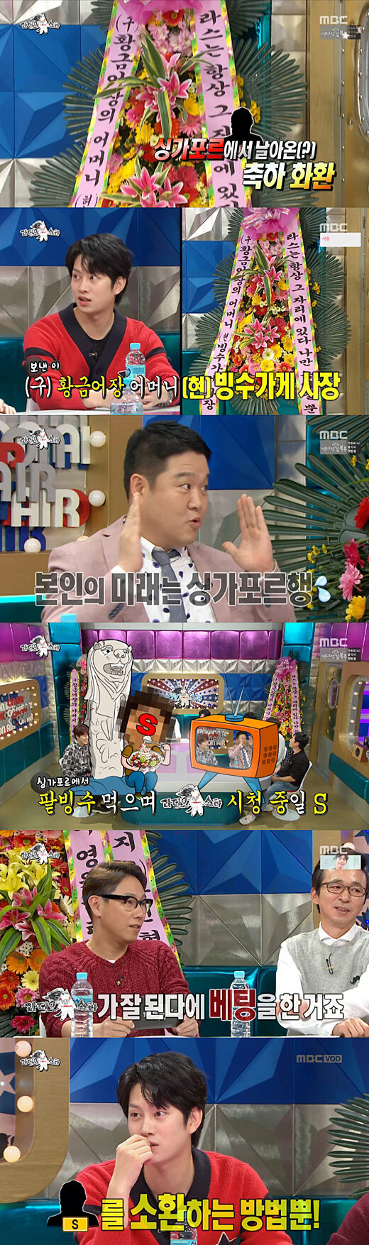화환에는 "구 황금어장의 어머니 현 빙수가게 사장"이라며 "라스는 항상 그 자리에 있다 나만 늙어갈 뿐"이란 문구가 적혀 있었다. '구 황금어장의 어머니'란 대목에서 '라디오스타'와 '황금어장'을 향한 그의 여전한 관심이 드러난 셈이다.