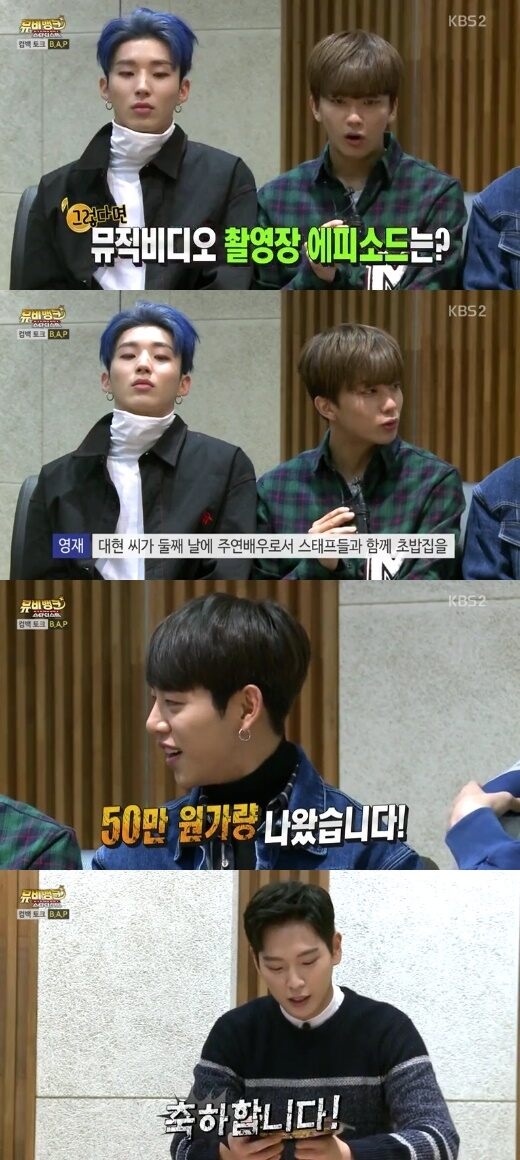 또 B.A.P는 역대 뮤직비디오를 뽑았고, 힘찬은 "'대박 사건' 뮤직비디오가 '하지 마'로 넘어갔다"라며 비하인드 스토리를 전했다.