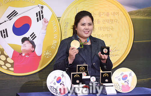 [골프선수 박인비가 10일 오전 서울 마포구 창전동 한국조폐공사 영업개발단 제품홍보관에서 진행된 '박인비 선수 골든 그랜드슬램 달성 기념메달' 출시 포토세션에서 포즈를 취하고 있다. 사진 = 곽경훈 기자 kphoto@mydaily.co.kr]