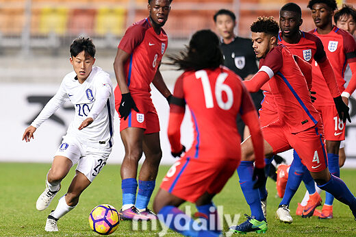 [마이데일리 = 수원 곽경훈 기자] 이승우가 10일 오후 수원월드컵경기장에서 진행된 4개국 친선대회 ;2016 수원 컨티넨탈컵 U-19 국가대표 국제축구대회' 2차전 대한민국-잉글랜드의 경기에서 돌파를 하고 있다.