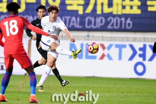 [마이데일리 = 수원 곽경훈 기자] 한찬희가 10일 오후 수원월드컵경기장에서 진행된 4개국 친선대회 ;2016 수원 컨티넨탈컵 U-19 국가대표 국제축구대회' 2차전 한국-잉글랜드의 경기에서 중거리 슛팅을 하고 있다.