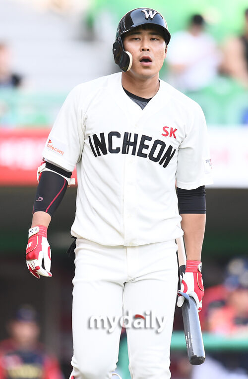 [마이데일리 = 인천 곽경훈 기자] SK 한동민이 3일 오후 인천 SK행복드림구장에서 진행된 '2018 신한은행 MY CAR KBO리그' SK-kt의 경기 1회말 2사 3루에서 니퍼트에게 삼진을 당한뒤 아쉬워 하고 있다.