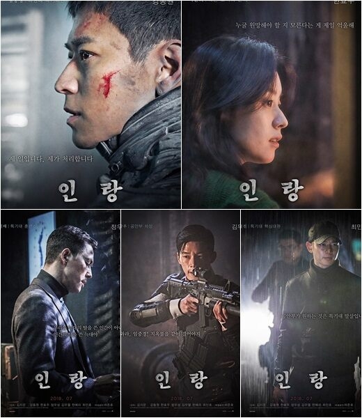 임중경을 인간적인 고민 속에 빠트린, 죽은 소녀의 언니 이윤희 역의 한효주의 풍부한 감정이 드러나는 표정과 "누굴 원망해야 할 지 모른다는 게 제일 억울해"라는 카피는 국가권력 기관들의 싸움 속에서 부품처럼 소모되는 '인랑' 속 인물들의 내면을 고스란히 드러낸다. 특기대를 지키는 훈련소장이자 그들의 정체성을 만들어주고 이끄는 정신적 지주 장진태의 캐릭터 포스터 속 정우성의 중후한 모습은 자신의 신념과 리더로서의 무게감을 보여준다.