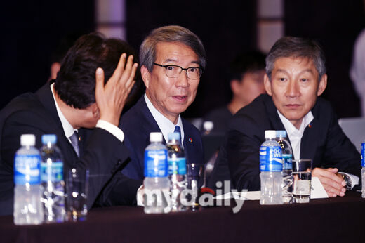 [마이데일리 = 곽경훈 기자] KBO 정운찬 총재와 장윤호 사무총장(오른쪽)이 25일 오후 서울 소공동 웨스턴조선호텔에서 진행된 '2019 KBO 신인 1차 지명 행사'에서 이야기를 나누고 있다.