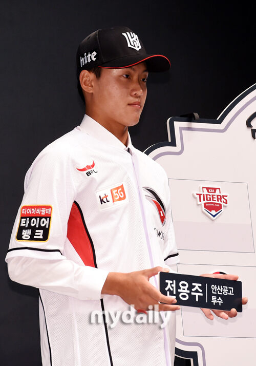 [마이데일리 = 곽경훈 기자] 안산공고 전용주가 25일 오후 서울 소공동 웨스턴조선호텔에서 진행된 '2019 KBO 신인 1차 지명 행사'에서 KT 1차 지명을 받은뒤 포즈를 취하고 있다.