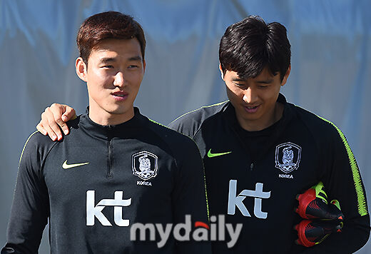 [마이데일리 = 상트페테르부르크(러시아) 김성진 기자] 대한민국 축구대표팀 장현수와 구자철이 25일 오후(현지시간) 러시아 상트페테르부르크 로모노소프 스파르타크 경기장에서 훈련을 하고 있다.