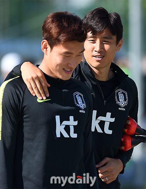 [마이데일리 = 상트페테르부르크(러시아) 김성진 기자] 대한민국 축구대표팀 장현수와 구자철이 25일 오후(현지시간) 러시아 상트페테르부르크 로모노소프 스파르타크 경기장에서 훈련을 하고 있다.