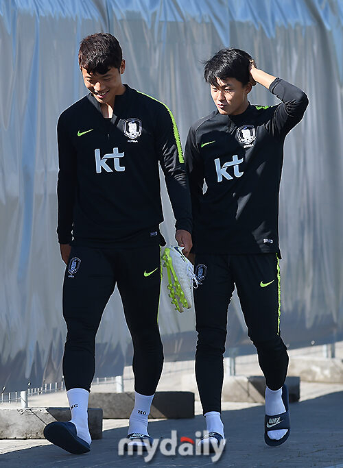 [마이데일리 = 상트페테르부르크(러시아) 김성진 기자] 대한민국 축구대표팀 황희찬과 이승우가 25일 오후(현지시간) 러시아 상트페테르부르크 로모노소프 스파르타크 경기장에서 훈련을 하고 있다.