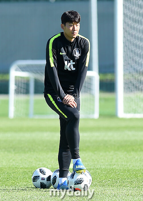 [마이데일리 = 상트페테르부르크(러시아) 김성진 기자] 대한민국 축구대표팀 손흥민이 25일 오후(현지시간) 러시아 상트페테르부르크 로모노소프 스파르타크 경기장에서 훈련을 하고 있다.