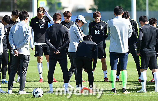 [마이데일리 = 상트페테르부르크(러시아) 김성진 기자] 대한민국 축구대표팀 신태용 감독이 25일 오후(현지시간) 러시아 상트페테르부르크 로모노소프 스파르타크 경기장에서 훈련을 지시하고 있다.