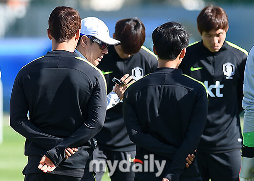 [마이데일리 = 상트페테르부르크(러시아) 김성진 기자] 대한민국 축구대표팀 신태용 감독이 25일 오후(현지시간) 러시아 상트페테르부르크 로모노소프 스파르타크 경기장에서 훈련을 지시하고 있다.