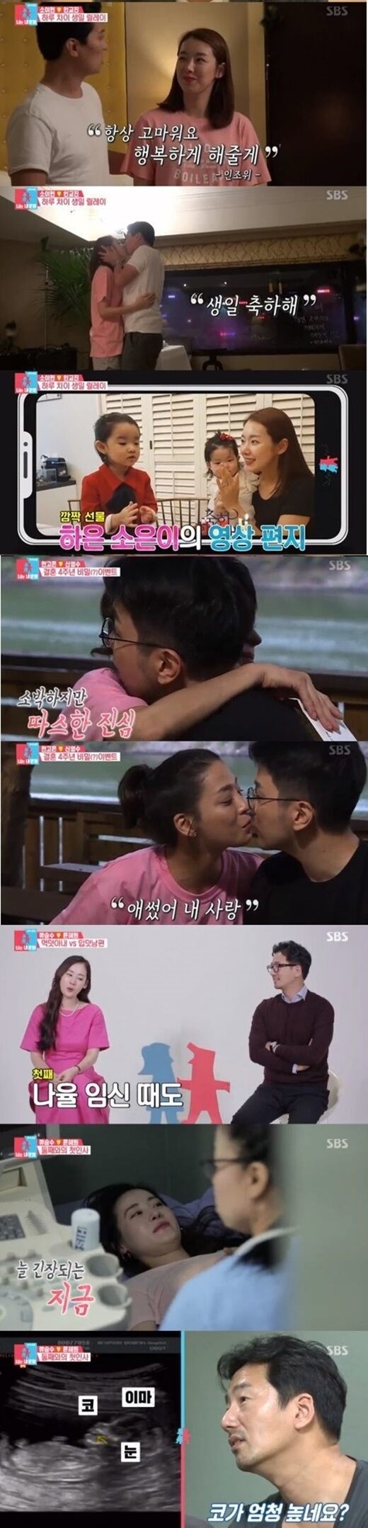 한편, 이날은 아내의 정기검진 날이었다. 윤혜원은 "첫째 임신했을 때도 남편이 거의 다 병원을 가줬다. 출산 후 조리원에서도 제 옆에서 신경을 많이 써준 사람"이라고 고마워했고, 류승수는 “조리원에서도 아침을 먹는데, 저만 남자였다”고 말하며 남다른 아내사랑을 드러냈다.
