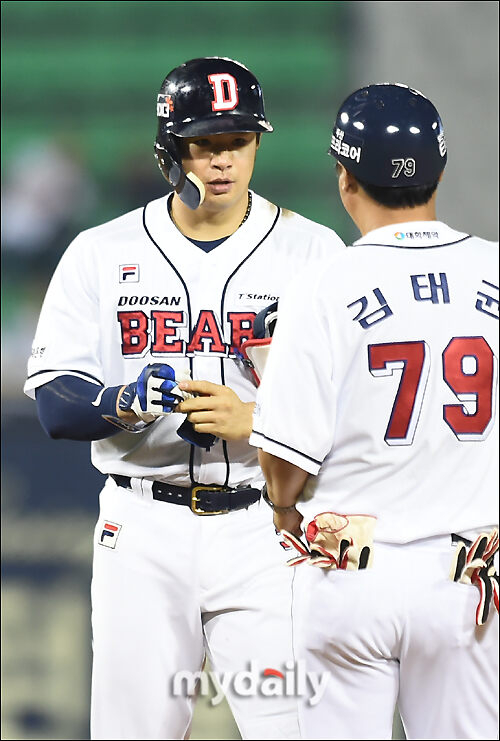 김재환은 0-1로 뒤진 1회말 2사 1루서 중전안타로 출루했다. 후속타자 양의지의 2루타 때 3루로 이동했고, 김재호의 적시타 때 홈을 밟으며 시즌 100번째 득점을 올렸다. 김재환은 이 득점으로 3년 연속 30홈런-100득점-100타점에 도달했다. KBO리그 1호다.