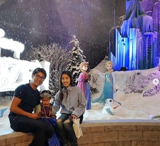 사진을 보면 안재욱이 추석 연휴를 맞아 아내 최현주, 딸 수현과 함께 겨울왕국 특별전을 찾은 모습이 담겨 있다.