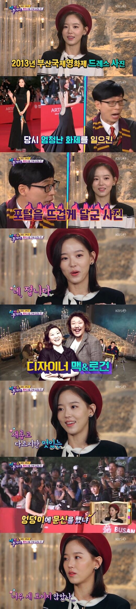 당시 강한나는 엉덩이가 살짝 보이는 파격 드레스로 시선을 모았다. 이에 MC 유재석은 깜짝 놀라며 "이게 강한나 씨냐. 화제가 됐었다. 포털 메인에 엄청 떠서 본적은 있는데 강한나 씨냐"고 거듭 물었다.