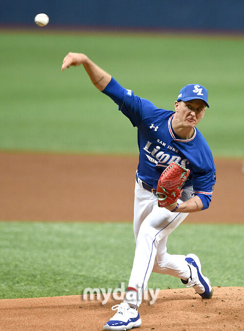 [마이데일리 = 유진형 기자] 삼성 선발투수 뷰캐넌이 3일 오후 서울 고척스카이돔에서 진행된 '2021 신한은행 SOL KBO리그' 개막전, 키움 히어로즈와 삼성 라이온즈의 경기에서 역투하고 있다.