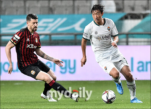 [마이데일리 = 송일섭 기자] 강원 고무열이 3일 오후 서울 상암동 서울상암월드컵경기장에서 진행된 '2021 하나원큐 K리그1' FC서울 vs 강원FC의 경기에서 돌파를 하고 있다.