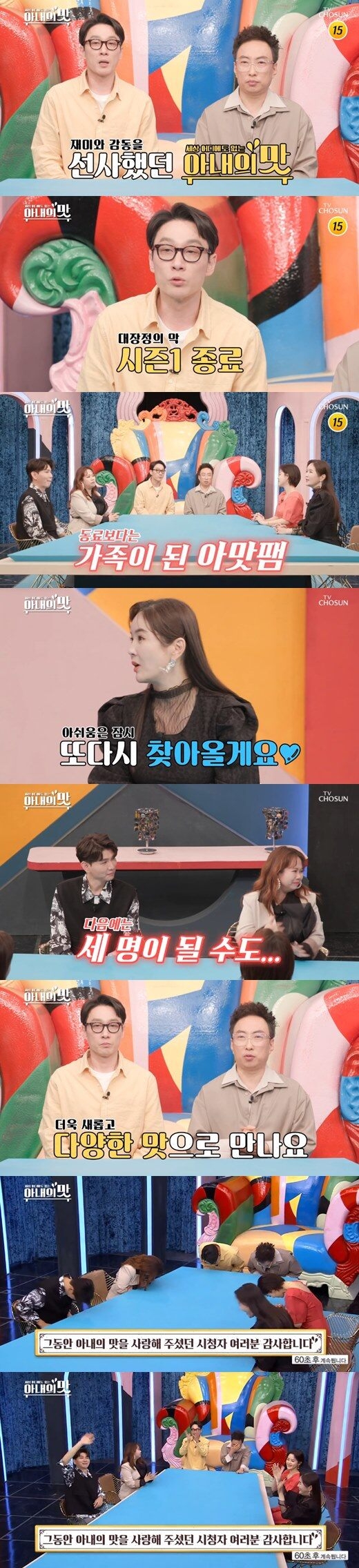 이하정은 "첫째가 다섯 살 때 ('아내의 맛'을) 시작했고, 그땐 둘째가 없었다. 이 프로그램과 함께 탄생한 유담이도 있고 추억들이 많다"며 아쉬워했다. 홍현희, 제이쓴은 "저희는 결혼하고 처음 ('아내의 맛'을) 시작했다"라며 "저희 부부의 결혼생활이 녹아있다"고 말했다. 이어 홍현희는 "신혼여행도 여기서 같이 같고, 어떻게 보면 친정같은 곳이다. 시즌2에는 3명이 될 수도 있다"했다.