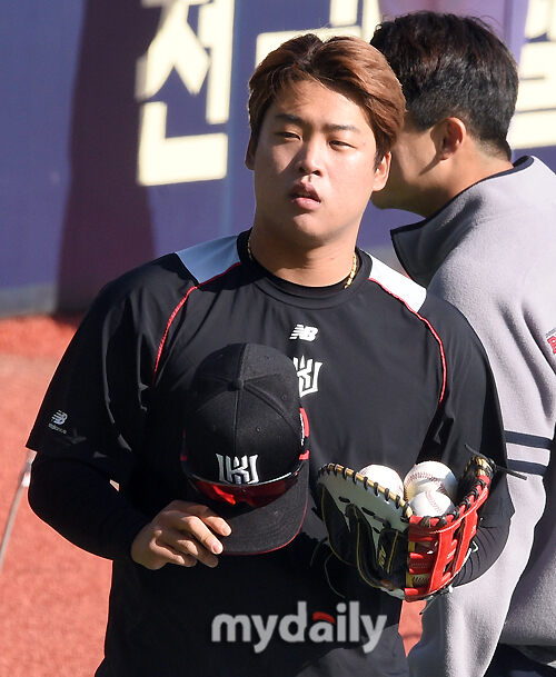 [마이데일리 = 유진형 기자] KT 강백호가 14일 오후 서울 고척스카이돔에서 진행된 '2021 신한은행 SOL KBO리그' 두산 베어스와 KT 위즈의 경기에 앞서 훈련하고 있다.