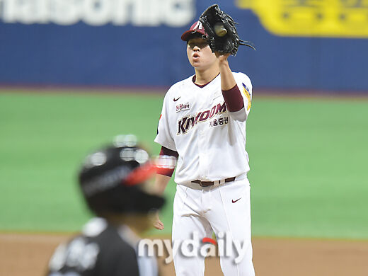[마이데일리 = 한혁승 기자] 키움 선발 김정인이 14일 오후 서울 고척동 스카이돔에서 열린 2021 KBO리그 LG-키움 경기 1회초 1사에 두 타자 연속 볼넷을 내줬다.