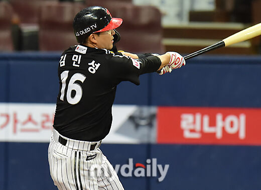 [마이데일리 = 한혁승 기자] LG 김민성이 14일 오후 서울 고척동 스카이돔에서 열린 2021 KBO리그 LG-키움 경기 2회초 첫 타자로 나와 2루타를 쳤다.