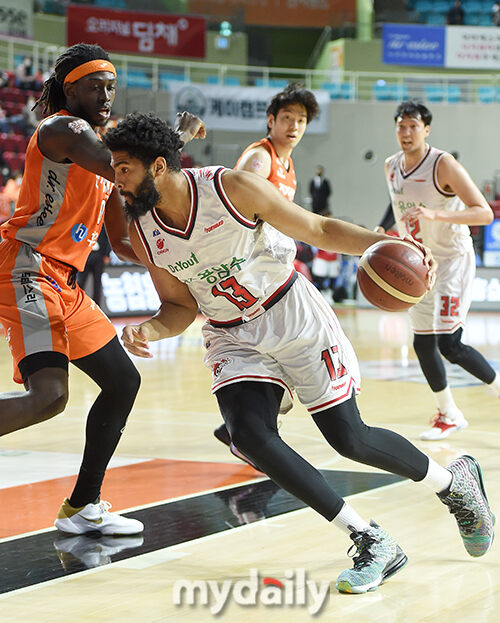 [마이데일리 = 인천 김성진 기자] 오리온 로슨이 14일 오후 인천 삼산월드체육관에서 진행된 '2020-2021 현대모비스 프로농구' 6강 플레이오프 3차전 인천 전자랜드와 고양 오리온의 경기에서 돌파를 하고 있다.