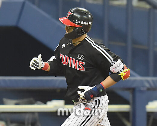 [마이데일리 = 한혁승 기자] LG 채은성이 14일 오후 서울 고척동 스카이돔에서 열린 2021 KBO리그 LG-키움 경기 3회초 1사에 솔로포를 쳤다.
