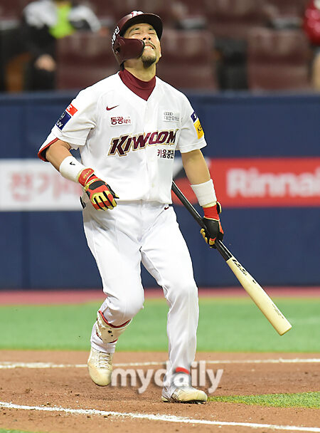[마이데일리 = 한혁승 기자] 키움 이용규가 14일 오후 서울 고척동 스카이돔에서 열린 2021 KBO리그 LG-키움 경기 3회말 2사에 기습 번트를 놓친 후 아쉬워하고 있다.