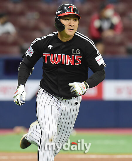 [마이데일리 = 한혁승 기자] LG 오지환이 14일 오후 서울 고척동 스카이돔에서 열린 2021 KBO리그 LG-키움 경기 7회초 1사 만루에 2타점 2루타를 쳤다.