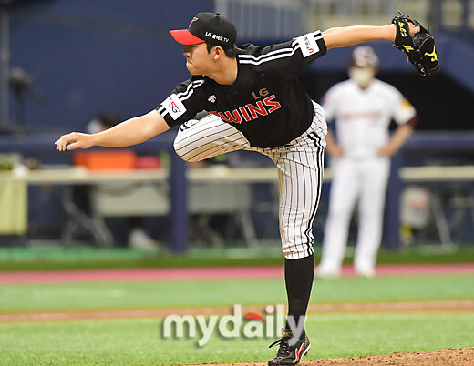 [마이데일리 = 한혁승 기자] LG 이찬혁이 14일 오후 서울 고척동 스카이돔에서 열린 2021 KBO리그 LG-키움 경기 9회말 13-0으로 앞선 상황에 교체되 마운드에 올랐다.