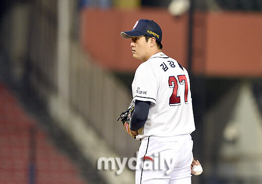 [마이데일리 = 유진형 기자] 두산 김강률이 14일 오후 서울 잠실야구장에서 진행된 '2021 신한은행 SOL KBO리그' 두산 베어스와 KT 위즈의 경기에서 9회초 구원등판해 투구를 준비하고 있다.