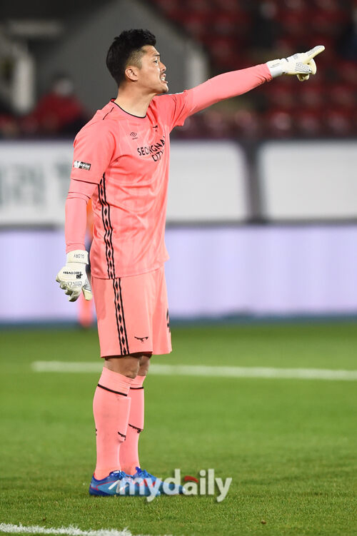 [마이데일리 = 성남 곽경훈 기자] 성남 김영광 골키퍼가 21일 오후 경기도 성남 탄천종합운동장에서 진행된 '하나원큐 K리그1 2021' 성남-인천의 경기에서 수비 위치 지정을 하고 있다.