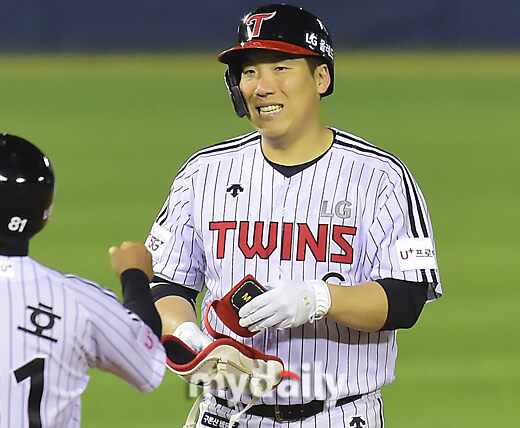 [마이데일리 = 한혁승 기자] LG 김현수가 21일 오후 서울 잠실야구장에서 열린 프로야구 2021 KBO리그 KIA-LG 경기 5회말 1사 1-2루에 2타점 역전 적시타를 쳤다.