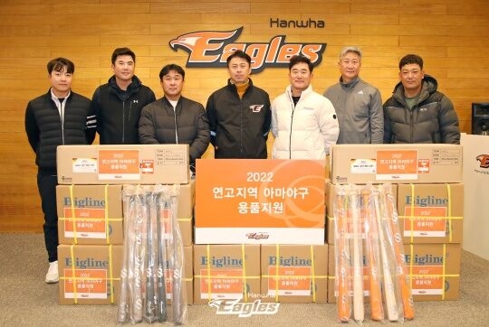 한화 이글스는 30일 "29일 대전 한화생명 이글스파크와 30일 원주고등학교에서 각각 야구용품 전달식을 진행했다"라고 전했다.