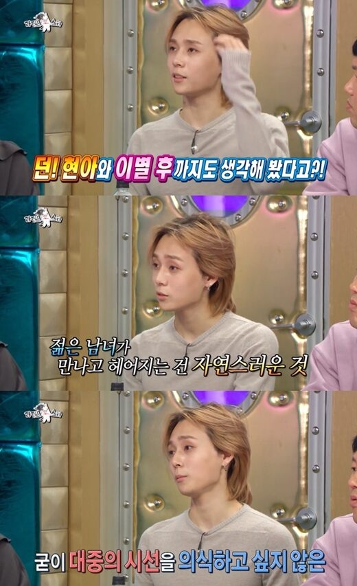 앞서 던은 지난 2019년 MBC '라디오스타'에 출연, 현아와 이별 후에 대해 이야기 한 적 있음을 고백했다. 그는 "'나중에 우리 헤어지면 어떻게 할까. 사진도 엄청 많은데'라는 이야기를 했다"며 말했다.