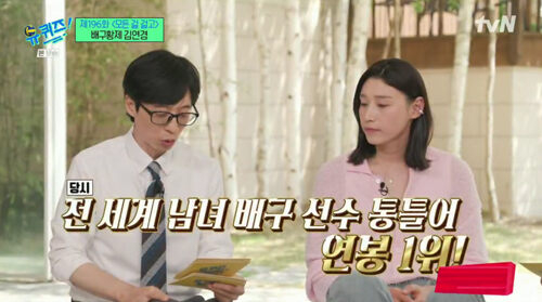 이날 방송에서 김연경은 "튀르키예에서 뛸 때 전 세계 남녀 배구 선수 통틀어 연봉 1위였다고?"라는 유재석의 물음에 "연봉, 나쁘진 않았다"고 답해 놀라움을 안겼다.