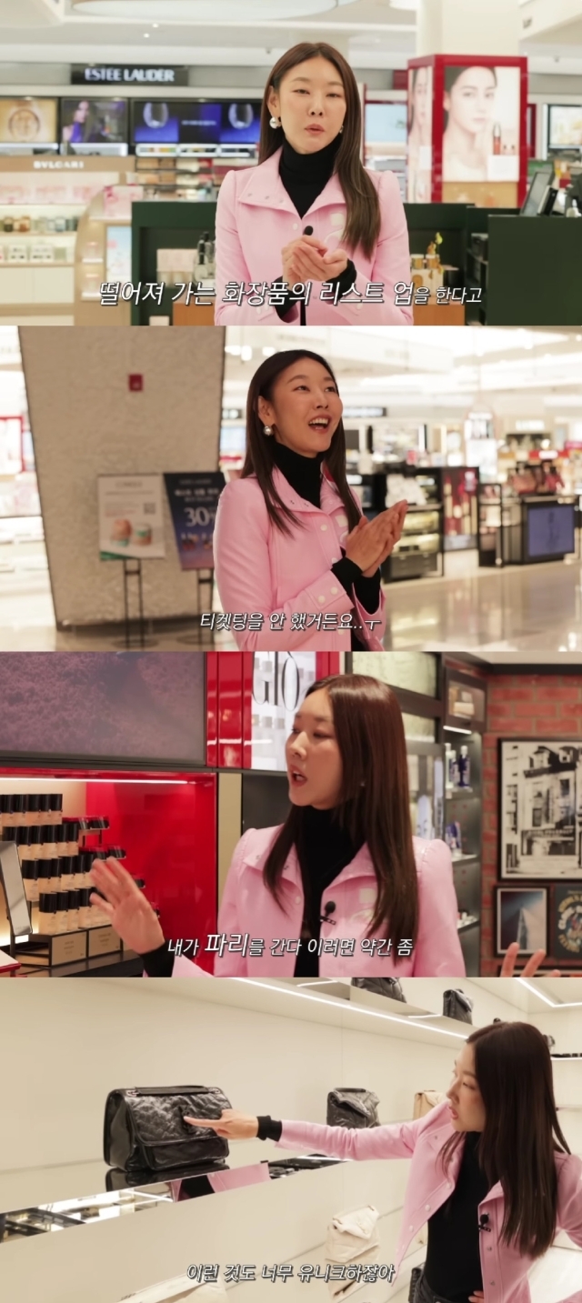선글라스 코너를 지나 명품관에 도착한 한혜진은 Y사 명품백을 앞에 두자 "내가 또 파리에서 쇼를 하지 않았냐"며 반가움을 표했다.