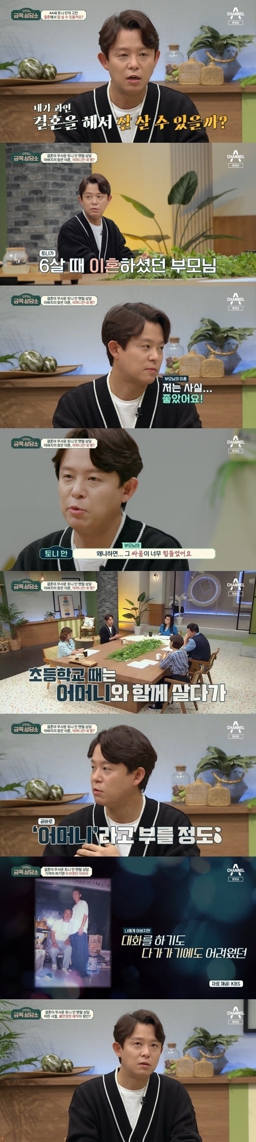 토니안은 그러면서 "사실 나에게는 친어머니 외에 새 어머니가 세 분이 더 계신다. 어머니가 네 분이다. 그렇게 청소년기를 보내다보니 '혹시 나도?'라는 생각을 하게 됐다"고 고백해 안타까움을 더했다.