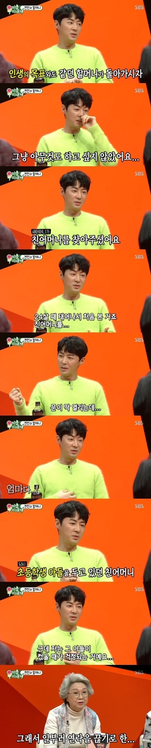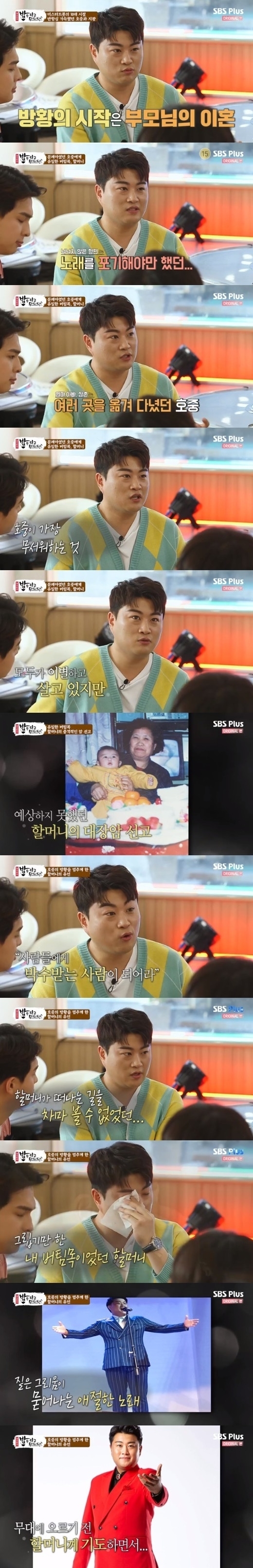 김호중은 이어 "할머니 손에 자랐는데, 제가 고2 때 돌아가셨다. 지금도 제가 제일 무서워하는 게 이별이다. 이별하면서 살고 있지만 아직까지도... 나중에도 제게 가장 무서운 건 이별이다"라며 "가족에게 누구나 다 그렇겠지만 저 역시도 후회하는 한 사람이 있다. 학교 때문에 고등학생 때 할머니와 떨어져 지냈는데 자주 못 찾아뵙는 건 당연했고 전화도 자주 못 드렸다. 그런데도 할머니는 제가 방황하고 사고치고 다니는 걸 아시면서도 티 하나 안 내주셨다"라고 당시를 떠올렸다.