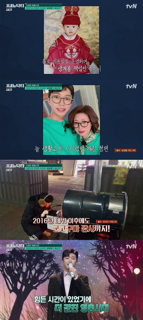 이에 지난 4월 tvN '프리한 닥터'에서 연예부기자는 "임영웅 씨 아버지가 임영웅 씨가 다섯 살일 때 사고로 돌아가셨다. 그래서 어머니가 홀로 경기도 포천에서 작은 미용실을 운영하면서 외아들인 임영웅 씨를 키우게 됐는데, 아무래도 외벌이다 보니까 생활고에 시달릴 수밖에 없었다"고 전했다.