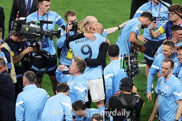 [엘링 홀란드, 펩 과르디올라 맨체스터 시티 감독, 맨체스터 시티 선수단. 사진= 게티이미지코리아]