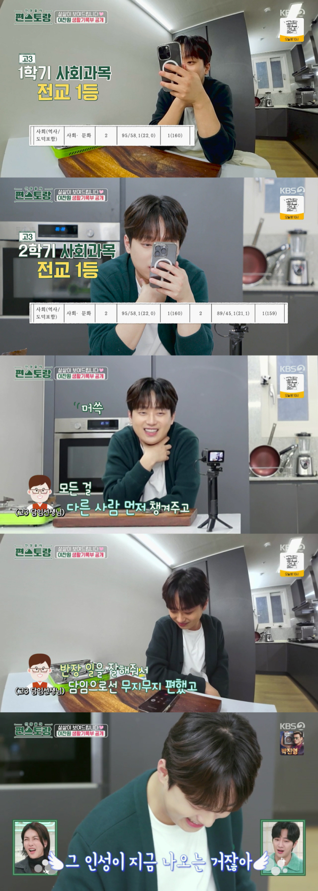이에 이찬원의 고등학교 3학년 담임선생님은 "항상 본인 거는 못 챙겨도 모든 걸 다른 사람 먼저 챙겨주고. 반장을 하면서 온갖 싫은 소리 다 해서 괜히 욕 다 얻어먹었고. 반장 일을 잘해줘서 담임으로선 무지무지 편했고. 그래서 애들 간의 마찰도 많이 없었고"라는 종합의견을 전했다.