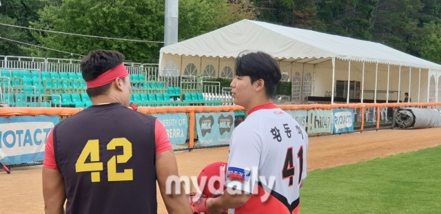 황동하는 자신을 냉정하게 평가했다. “직구도 평범하고, 변화구는 좋지 않다. 마운드에 올라가면 타자들을 잡자는 생각인데, 직구와 변화구 모두 좀 더 좋아져야 한다. 정재훈 코치님에게도 많은 도움을 받는다. 스피드는 146~147km까지 나오게 노력하고 있다”라고 했다.