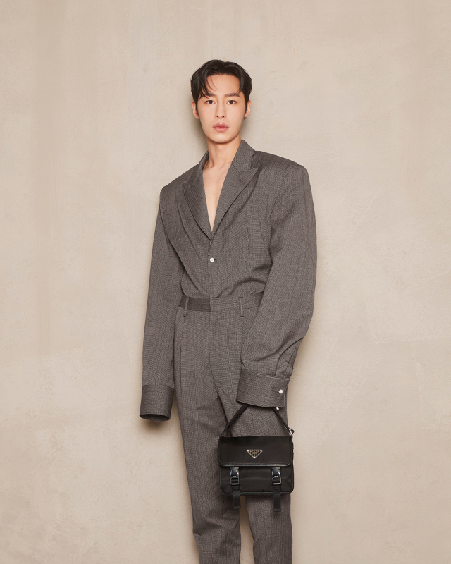 당시 이재욱은 쇼의 코드였던 '슈트'에 걸맞게 유니크한 울 소재의 그레이 컬러 슈트 셋업과 블랙 컬러의 리나일론 및 사피아노 레더 소재의 숄더 백으로 트렌디한 룩을 선보였다. 카리나는 화이트 오간자 드레스와 라임 컬러의 리나일론 백을 매치해 화사하면서도 사랑스러운 비주얼을 자랑했다.