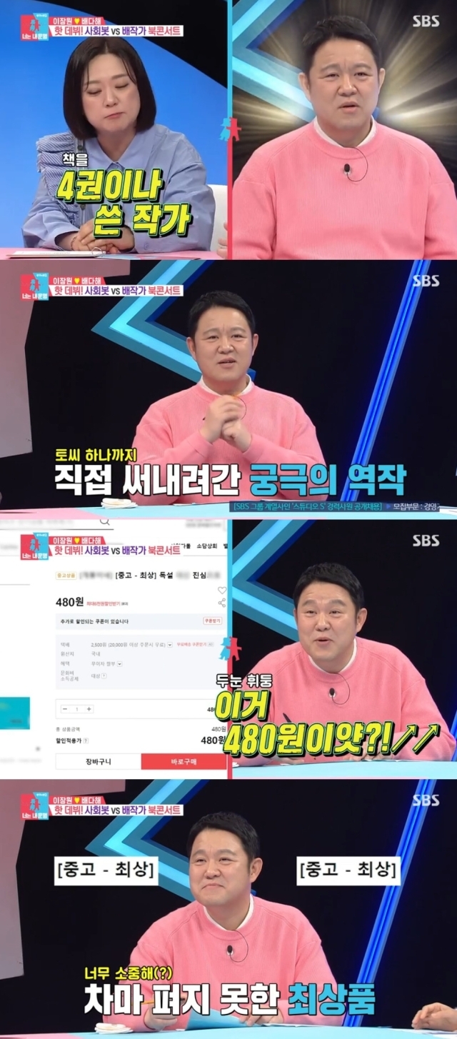 그러나 김숙은 "더 놀라운 제보를 하나 더 구해왔다. 김구라 씨 책이 중고시장에서 480원에 거래가 되고 있다"라고 말해 웃음을 자아냈다. 실제 김구라가 쓴 책은 책 값 480원에 배송비 2500원에 판매되고 있었다.